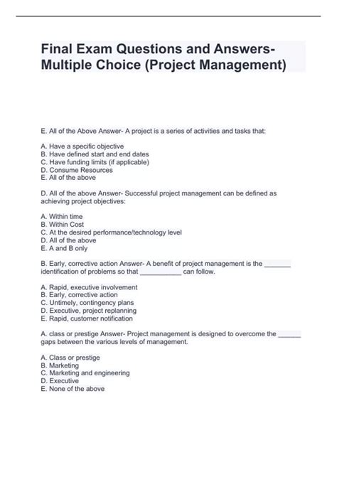 Read Online Project Management Final Exam Questions And Answers Doc