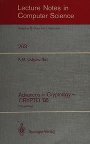Read Online Advances in Cryptology CRYPTO 86 Proceedings Reader online is a convenient and frugal way to read Advances in Cryptology CRYPTO 86 Proceedings you love right from the comfort of your own home. Yes, there sites where you can get Reader "for free" but the ones listed below are clean from viruses and completely legal to use.