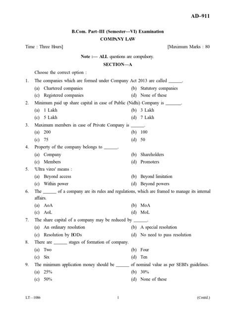 Download Company Law Exam Questions Answers Doc