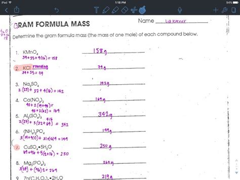 Read Online Gram Formula Mass Answer Key Reader
